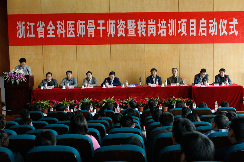 浙江省卫生厅、省发改委、财政厅、教育厅等有关部门领导,以及省医学学术交流管理中心、省全科医学教育培训中心、省全科临床培训基地和社区实践基地等有关领导和第一期培训近百名学员参加了启动仪式。