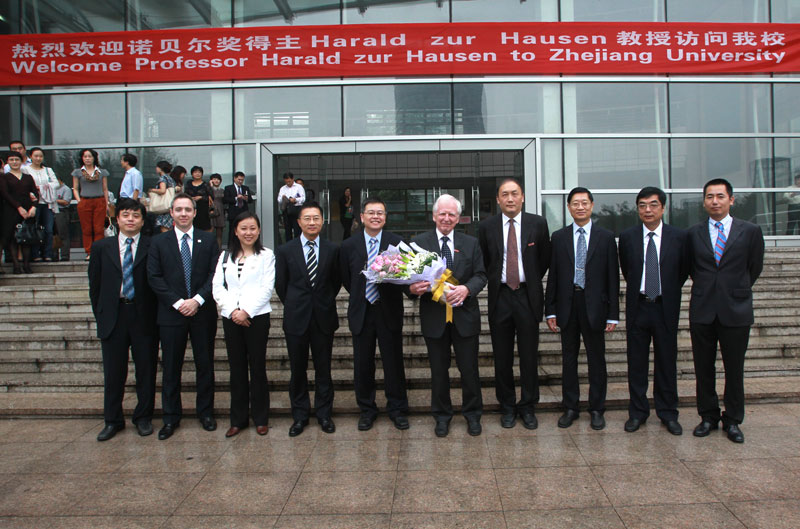德国知名病毒学家哈拉尔德·楚尔·豪森教授(Harald zur Hausen)于2011年10月13日访问浙江大学。浙江大学杨卫校长,外事处李敏副处长,医学部常务副主任罗建红教授,医学学部党委书记陈智教授,附属妇产科医院党委书记谢幸、副院长吕卫国在蒙民伟楼接待了豪森教授。