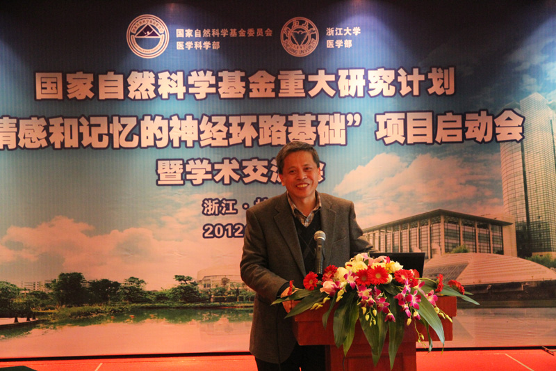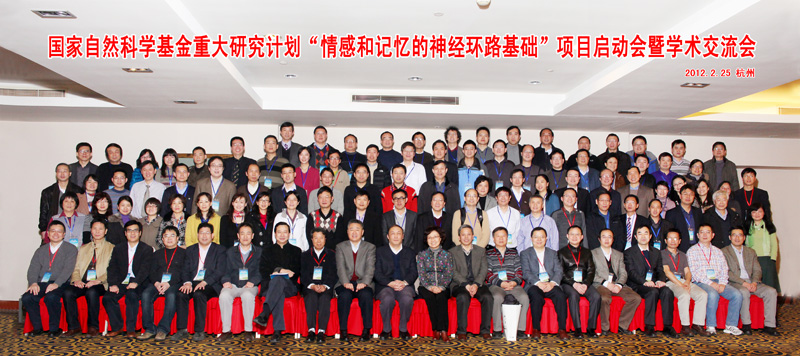 国家自然科学基金重大研究计划“情感和记忆的神经环路基础”项目启动会暨学术交流会于2012年2月24至26日在杭州召开。本次会议由国家自然科学基金委员会医学科学部主办,浙江大学医学部承办。国家自然科学基金委医学科学部主任王红阳院士、常务副主任董尔丹、副主任冯峰以及周延泽、曹河圻、杨正宗、庄乾坤、王岐山等基金委领导,浙江大学校长杨卫院士、副校长来茂德、医学部主任段树民院士、副主任罗建红、许正平以及本计划专家组成员出席了会议。2011年获得本重大研究计划资助的项目负责人和来自全国20多个科研院所及高校的科研人员参加了会议。其中正式代表92名,实际出席人数156名,出席代表涵盖医学、数学、化学、物理、生物等领域。