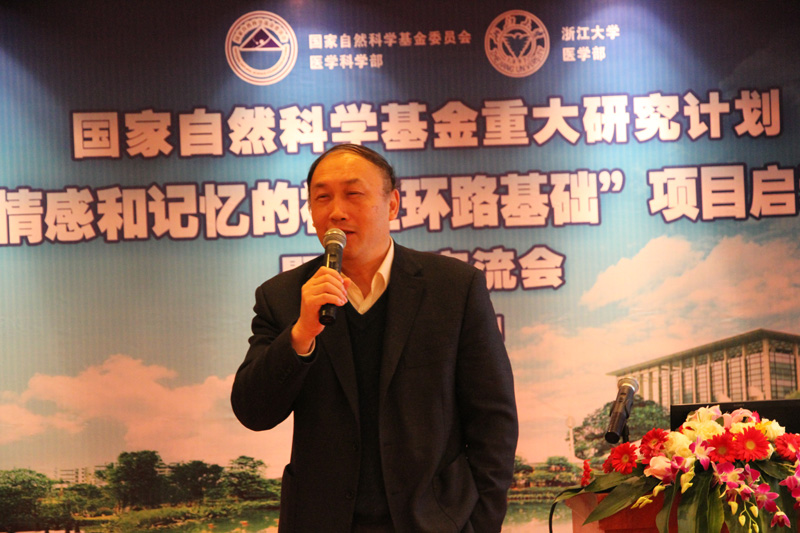 杨卫校长代表浙江大学衷心欢迎到会的领导和嘉宾。杨卫校长用风趣幽默的语言浅谈了自己对神经生物学及本重大研究计划的体会,期望专家们能够通过本重大研究计划的推行,在“情感和记忆的神经环路基础”研究方面有所突破,为人类在神经生物学领域的发展做出重大贡献。