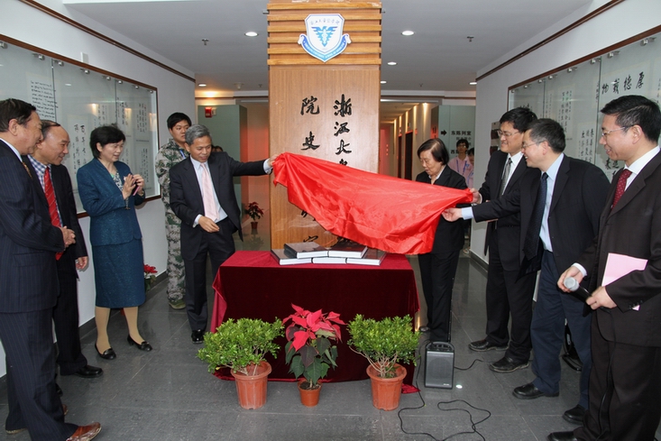 在浙江大学医学部百年华诞庆典临近之日,5月25日下午,医学部在综合楼二楼隆重举行院史陈列室揭牌以及《百年浙医》发行仪式。校党委副书记任少波,医学部主任段树民院士等领导班子成员,郑树森院士、李兰娟院士,原浙江医科大学领导郑树、吕世亭、陈昭典、黄书孟以及部分医学部师生参加了仪式。仪式由医学部党委书记黄河主持。