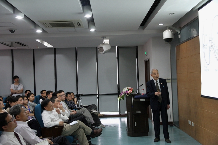 陈宜张院士的报告围绕 “从突触到脑--兼论还原论的弱点”这一主题展开,深入浅出,娓娓道来。从“突触”这一概念的形成,到突触传递理论的深入发展,陈宜张院士把近一个世纪来突触研究的发展历程生动地呈现给在场的听众。更吸引听众的是,他阐述了“突触理论在脑的神智(mind)功能的应用”,指出从突触到脑与神智的关系,仍然有很长的一段路要走。陈宜张院士虽已80多高龄,却依然目光炯炯,精神矍铄,话音抑扬顿挫,他的报告将一门如此前沿的科学问题展现得异常生动易懂。整个报告过程,陈宜张院士深邃的科学思想感染着在场的每一位听众。报告结束后,他继续和感兴趣的教授们进行了长时间的交流。