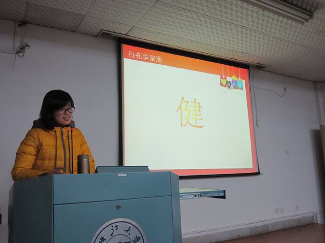 之后便是生活达人乐璟芸学姐分享的华家池的“衣食住行健”。身为医学生,当然要有强健的体魄,健全的人格。乐学姐教育学习学妹们在学号的同时不忘吃好玩好身体好,想来也别有一番道理。