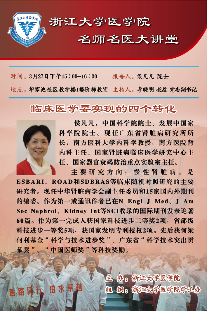 医学院名师名医大讲堂(第五讲)——侯凡凡院士讲座的通知