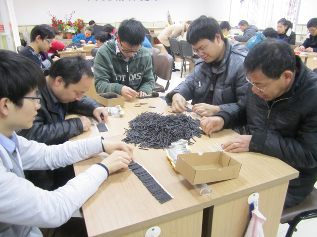 大厅里,约莫二十位花甲老人安静地做着手边的工作——电阻组装。见到志愿者们,很开心也很熟稔地打起招呼“嗨,今天给我们带来了什么节目啊?”一边招呼着大家做到老人们的身边。老人们活泼开朗、热情好客的态度很快使初初到来的志愿者们加入了畅聊和帮忙的行列。此外,志愿者们也应老人们的要求,充分发挥自己的才艺,唱歌、朗诵,无所不有。老人们还说希望下次能有话剧和小品表演……老人们也很愿意展示自己的才艺。一位年逾古稀的老奶奶是公认的才女,不仅仅为志愿者们朗诵了自己作的诗《送别》,还为大家唱起了越剧,场面和谐欢乐。