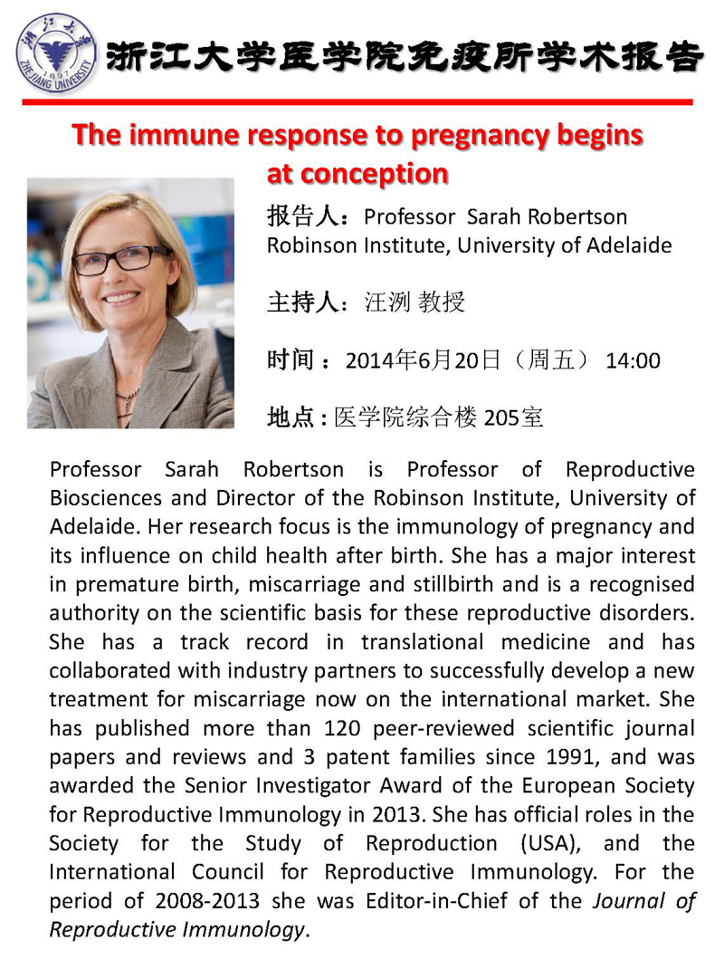 澳洲阿德莱德大学罗宾逊研究所所长Sarah Robertson教授学术报告