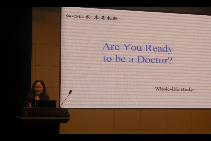 方向明作了题为“仁心仁术、求是求新”的始业教育报告。她向同学们简述了学院的历史变革、组织结构、知名教授和学科带头人以及一些重点实验室等。以医学院人才培养的目标为主线,围绕“我们做到了吗?”、“何以为之?”等问题,结合学院的发展给出了答案。她还为新生推荐医学方面的著作,并希望同学们能向医学界的优秀前辈学习,把他们作为自己的楷模,对照学习。方院长的始业教育报告亲切生动又意味深长,娓娓道来,医学院“培养和造就医疗实践、生物医学研究及公共卫生管理的学者和未来领导者”的培养目标也被每一位新生所牢记。