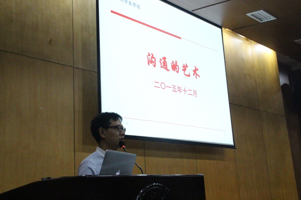 第三场培训紧接第二场而进行,我们邀请到了浙江大学礼仪中心的闫小龙老师,给我们讲述沟通礼仪方面的知识。学会如何沟通对于一个医生或医学生都是具有职业意义的,而且今年来医患关系越来越复杂,我们更需要了解这方面的礼仪知识。闫老师不仅演讲深入浅出,循循善诱,还特别注重与台下同学间的互动。虽然时间已晚,不过可以看出大家都没有丝毫困意。