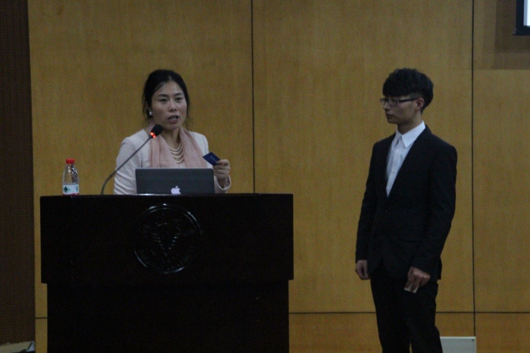 讲座在轻松的氛围中开始,王老师首先也是重点讲述了医学生白大褂的穿着。老师指出,白大衣是职业身份的象征,穿上白大衣就意味着自己要以一名医生的形象示人。她还邀请了部分同学上台展示了他们穿白大褂的方式,然后分别指出了不合适地方。老师回忆自己自从1991年行医至今,有许多发生在医院的难忘经历,而每一次经历都能使自己成长。王老师的讲座十分幽默,各种医生礼仪方面的例子也是信手拈来,给人一种莫名的亲切感,台下的气氛也非常活跃。