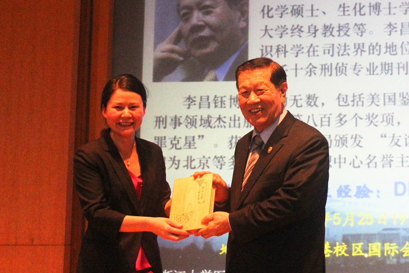 浙江大学海外名师大讲堂第四十四期暨医学院“名师名医大讲堂”第十期——李昌钰博士报告会于2016525日晚上在紫金港校区国际会议中心225室成功举办。全球刑事鉴识专家、美国国家现场鉴识培训中心主任李昌钰博士为大家带来题为《DNA技术在鉴识科学中的应用》的精彩报告,和在场的600多位浙大学生分享了他的传奇人生,并向大家介绍DNA技术在鉴识科学中的应用。报告会由医学院副院长李晓明教授主持。副校长罗建红教授向李博士颁发了启真海外名师大讲堂的纪念碑和感谢证书,医学院党委副书记陈周闻老师颁发医学院名师名医大讲堂鸣谢牌。