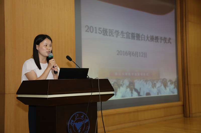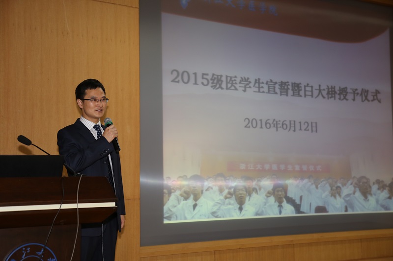 2016年6月12日晚,医学院2015级医学生宣誓暨白大褂授予仪式在紫金港校区蒙民伟楼225报告厅隆重举行。医学院副院长、附属第一医院院长、2015级新生之友代表王伟林教授、医学院党委副书记陈周闻老师、医学院团委/学工办、教学办相关老师、班主任和2015级全体医学生一起出席了本次活动。仪式由学工办副主任杜悦主持。
