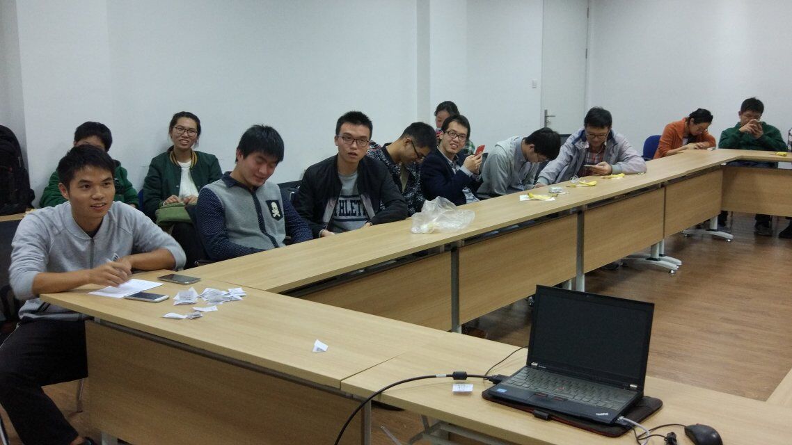 最后活动环节本来是“你画我猜”游戏,由于设备问题临时改成“你说我猜”或“你做我猜”,反而增添了更多趣味。内建委员钭赉振和张黎悦设计了阴阳师组、明星组、学霸组、歌名组四大区块,让爱好不同的同学们都有机会参与游戏,情侣组合、闺蜜组合、基友组合、现场点名组合等等,到了真正考验大家默契的时刻。最终各个组的胜出组合进入决赛PK,决赛猜的是班级里的同学,考验的是班级同学间的互相了解与认识,各种有趣的、逼真的模仿让下面的群众笑的停不下来。