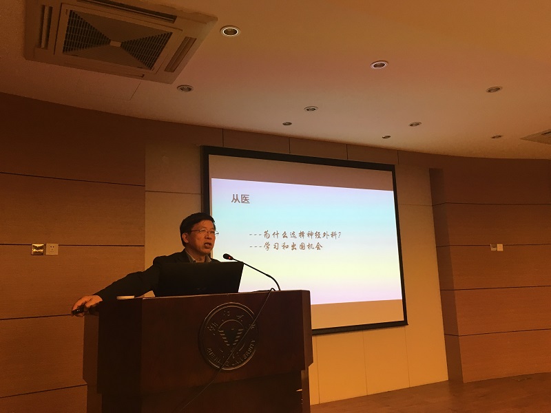 2017年3月29日晚,医学生职业生涯规划系列沙龙优秀医生板块第二十期在紫金港校区医学综合楼705室成功举行。本次沙龙主讲嘉宾附属二院神经外科主任、首届“浙江大学好医生奖”获得者张建民教授。沙龙由临床医学八年制1602班徐紫姮同学主持。