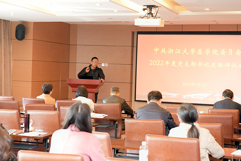 3月3日上午,医学院党委召开2022年度党支部书记述职评议会。学校党委组织部副部长胡昱东,学院兼职组织员张新跃、张小玲、成子贻,脑科学与脑医学学院党总支书记蒋笑莉,公共卫生学院党总支书记吕黎江出席会议。会议由学院党委副书记徐凌霄主持,各党支部书记、副书记及党员代表40余人参加会议。