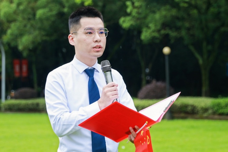 口腔医学专业研究生陆科杰作为毕业生党员代表发言,他从自身说起,感激祖国对这代青年人成长和发展的支持和保护,用“挑战杯”备赛的经历讲述“青春无畏挑战,人生无限可能”的重要意义和青年助力健康中国战略的青春力量。他号召全体毕业生,作为新时代医学生,站在新的历史定位,应当时刻牢记以高远使命升华青春梦想,努力汲取党的理论精华,不断追求卓越、勇攀科学高峰,开拓建功立业的胸襟和格局,为祖国的繁荣富强和人民的幸福安康战斗不息、奋斗不止。