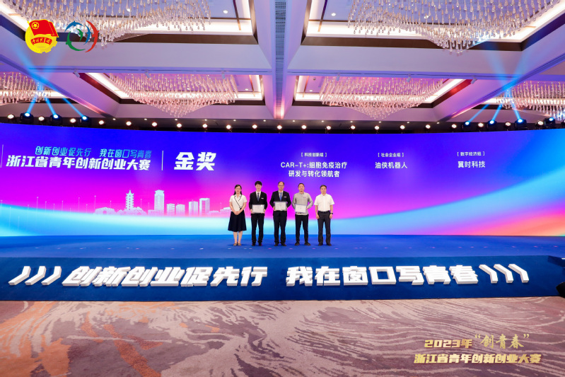 在上周,由团浙江省委联合省网信办、发改委、经信厅、科技厅、人社厅、农业农村厅、商务厅、银保监局、省学联主办的2023年“创青春”浙江省青年创新创业大赛在7月19日落下帷幕。第一临床医学院“CART+细胞免疫治疗研发与转化领航者”项目团队经过区、市、省层层比拼,最终取得省级金奖(科技创新组全省第一名)。