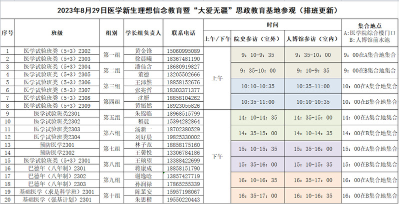 关于组织2023年医学新生理想信念教育暨“大爱无疆”思政教育基地参观的通知(8.25更新)