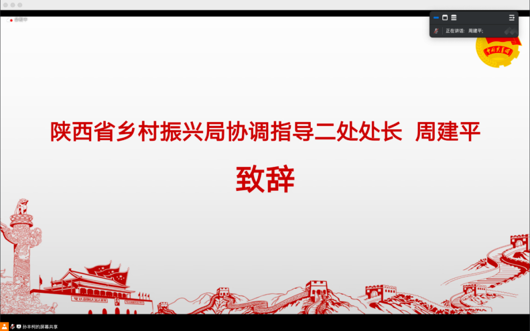 主持人孙丰柯简要介绍了此次联合科普实践队的相关情况。随后,特邀嘉宾-陕西省乡村振兴局协调指导二处处长周建平致辞,他认为健康乡村建设可以“护航”乡村振兴,通过帮助一个个家庭树立健康意识,可以帮助老百姓避免因为意识不足,导致因病致贫、因病返贫,减少他们的痛苦、国家的负担,因此这次各高校院系合作开展“大健康”科普实践队有着重要意义,同学们在参与这次社会实践的过程中会有更多的意义。他还鼓励大学生在“仰望星空”的同时不忘“脚踏实地”,在自身不断成长、不断向前时也要对脚下的土地、家乡的人民饱含感情。