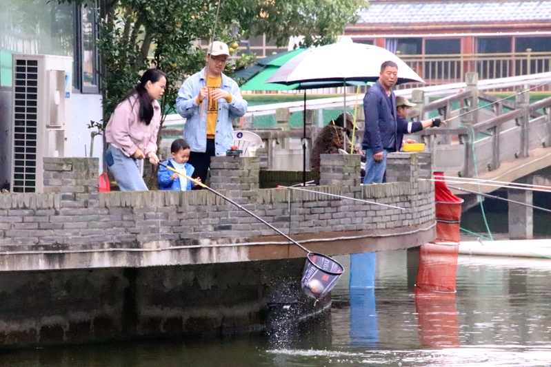 在细雨蒙蒙的秋日里,东江嘴村后江江边绿道被装扮得别有一番风情。参赛的教职工们身着各式垂钓装备,手持钓竿,端坐在钓位上,全神贯注地注视着浮标的动静,期待着鱼儿的咬钩。细雨不仅为比赛增添了几分诗意,也考验着选手们的耐心与毅力。