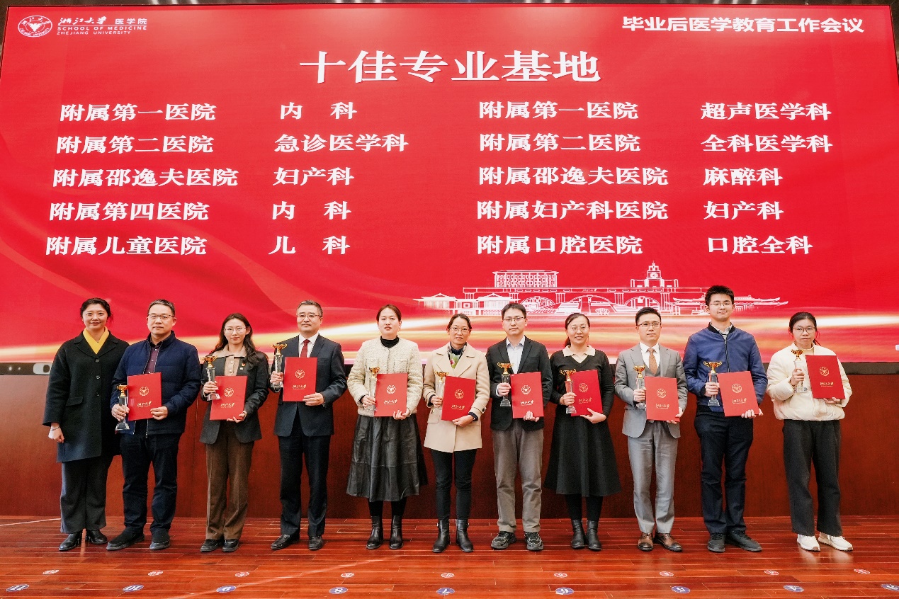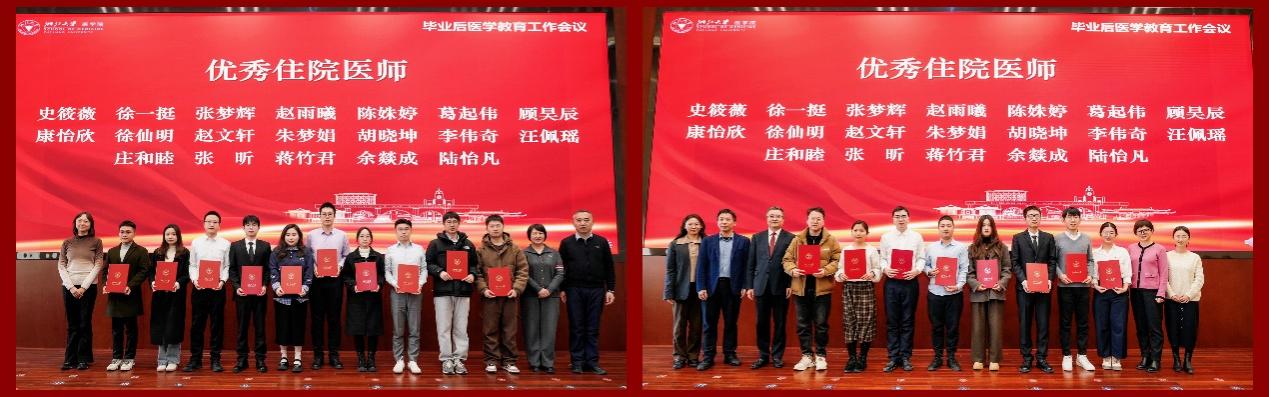 会议表彰了住院医师规范化培训2024年度“十佳专业基地”“十佳带教老师”19名“优秀住院医师”,并为在2024年住院医师规范化培训结业理论考核和国家执业医师理论考试中通过率百分之百的培训基地颁发了“优秀组织奖”,为多年来在住院医师规范化培训工作中做出杰出贡献的石淑文老师颁发“特殊贡献奖”。