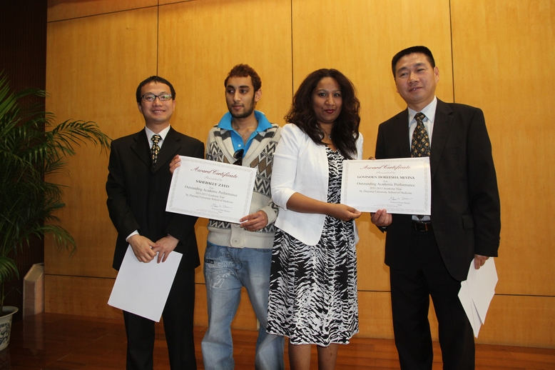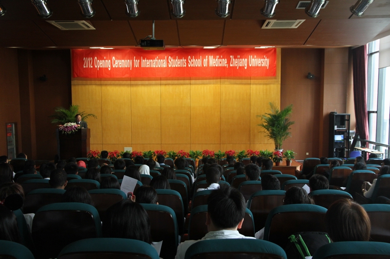 2012 Opening Ceremony for MBBS Oversea Student was Held in School of Medicine in September 15, 2012. The associate Dean of School of Medicine and the deputy Dean of International College gave opening address to the audience including school staffs and more than 70 new oversea students with their family members. Prof. Yu Hai gave a brief introduction of school’s history and general information. Prof. Bao Ai Min, as a teacher’s representative put forward her wishes and demands to the new students. Miss Annapurna representing all senior students gave a speech on the experiences as a medical student in Zhejiang University. Afterwards, all new students raised their right hands and read the medical student oath lead by prof. Yu Hai.