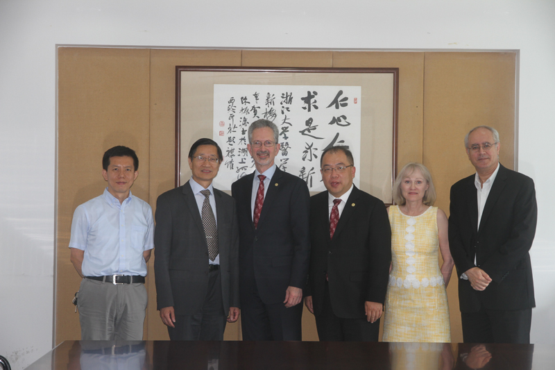 A five-people delegation from University of Ottawa visited Zhejiang University School of Medicine on June 5th. The delegation included Jacques Bradwejn, the dean of Faculty of Medicine, Yuwei Wang, the Project Officer and contact joint for China, Diana Koszycki, a professor of Faculty of Medicine, as well as Majid Dellah, the Consulate General of Canada in Shanghai. Throughout the visiting, Zhi Chen, the Executive Dean and Xiaoming Li, the Associate Dean for International Affairs and Graduate Study played host to the delegation.