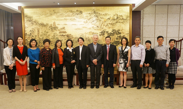 October 26th, Delegations from HongKong Huamao Group and University of Washington Visited Zhejiang University School of Medicine. The delegation from HongKong Huamao Group included Zhongxin Gong, the Executive Chairman of the Board and Marketing Manager, and Yinxin Gong, the Executive Chairman of the Board and Administration Manager. The delegation from University of Washington included Prof. Bruce Ransom, the Chair of Department of Neurology, and Dr. Jody Y. Li, Department of International Development. Zhaohui Wu, the President of Zhejiang University, Jianghong Luo, the Vice President of Zhejiang University, Meifeng Zhang, the assistant of the President, Ying Dang, the Vice Direcor of Office of Liaison, Mingfang Zhang, the Director of International Relations, Shumin Duan, the Dean of School of Medicine and Xiaoming Li, the Associate Dean of School of Medicine played host to the delegations.