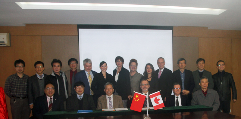 On Nov 23rd, the opening ceremony of Jointed Genetics and Genomics Medical Research Institute of Zhejiang University-University of Toronto was being held in the Administrative Building of Zhejiang University School of Medicine. Shumin Duan, the dean of Zhejiang University School of Medicine, Minxin Guan, the head of Zhejiang University Institute of Genetics, Trevor Young, the dean of University of Toronto Medical School as well as Howard Lipshitz, the head of Department of Molecular Genetics from University of Toronto attended the ceremony and signed their names on the memorandum. In addition, Prof. Lizhi Xu, who is a distinguished molecular geneticist, a fellow of US National Academy of Sciences and the head of Zhejiang University Qiushi Advanced Research Institute was also present and witnessed the signing ceremony.