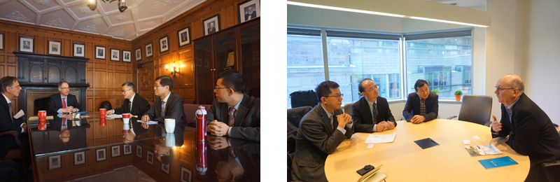 January 10th, the delegation paid a visit to University of Toronto. During the visit, topics regarding undergraduate students’ summer and clinical exchanging program, teaching staff training program and joint medical school program were deeply discussed with the staff from Faculty of Medicine including Dr. Peter Lewis who is the assistant vice president, Dr. Lynn Wilson who is the vice dean in charge of partnership and Dr. Jay Rosenfield who is the vice dean in charge of MD program, and initial cooperative intentions were reached. Moreover, led by Dr. Michael Apkon who is the president, the delegation visited the Affiliated Children’s Hospital and the Research Building.