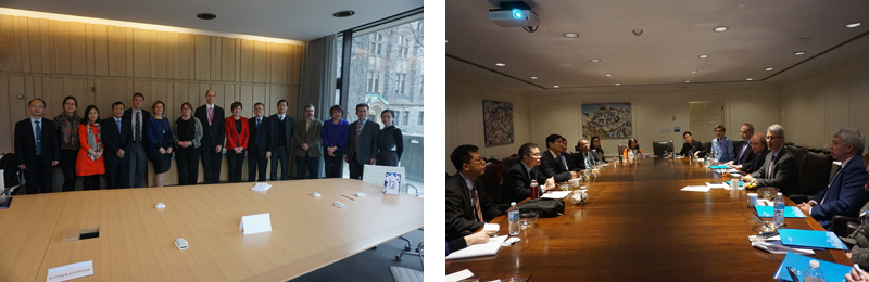 In mid-January, the delegation from Zhejiang University led by Prof. Jianhong Luo who is the vice president visited universities in Canada including University of Toronto, University of Ottawa, McGill University, University of Alberta and University of British Columbia. The delegation included Prof. Zhi Chen who is the executive dean of School of Medicine and dean of School of Public Health, Prof. XIaoming Li who is the associate dean for International Affairs and Graduate Study and Prof. Dajing Xia who is the associate dean of School of Public Health. During the visits, topics regarding student exchange program, teaching staff training program and joint medical school program were deeply discussed and cooperative intentions were reached in the end.