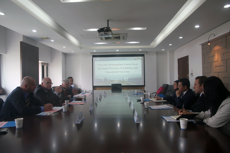 April 13th, the delegation from Maastricht University visited Zhejiang University School of Medicine. The five people delegation included Prof.dr. Harry W.M. Steinbusch who is a professor in Cellular Neuroscience and Mr. Twan Beurskens who is the Vice-Governor of the Dutch Province of Limburg. Prof. He Huang, the associate dean, Prof. Stijn van der Veen and Prof. Aimin Bao played the host.