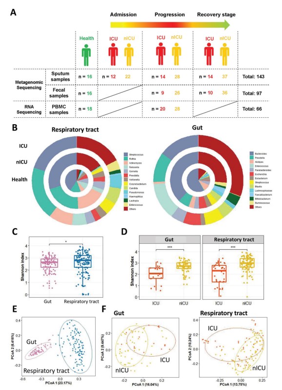 Figure 1. Altered respiratory tract and gut microbial compositions in patients with COVID-19