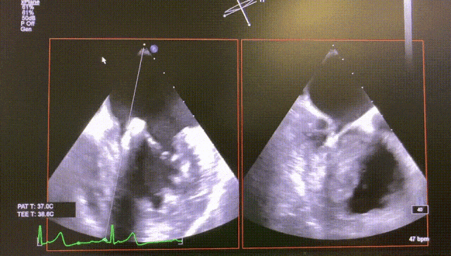 The procedure was smooth and uneventful. A SW0609 mitral clip was implanted to close the leaflet at P2, and the patient's regurgitation disappeared, with a mitral pressure difference of 2 mmHg and a significant decrease in left atrial pressure.