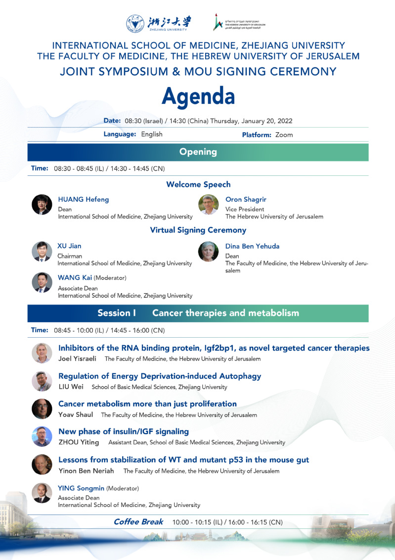 International School of Medicine,Zhejiang University-the Faculty of Medicine,the Hebrew University of Jerusalem Joint Symposium & MOU Signing Ceremony